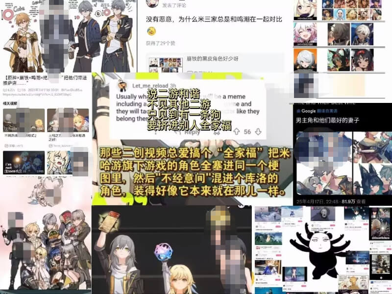 这类作品看起来不带恶意,但结合以上记录的那些“双厨作品”,米游玩家很反感在米游二创里看到«鸣潮»角色,于是这类作品经常会变成一种反米的舆论宣传:明明是不带恶意的正常二创,米游玩家却不乐意,米游玩家太敏感、极端。