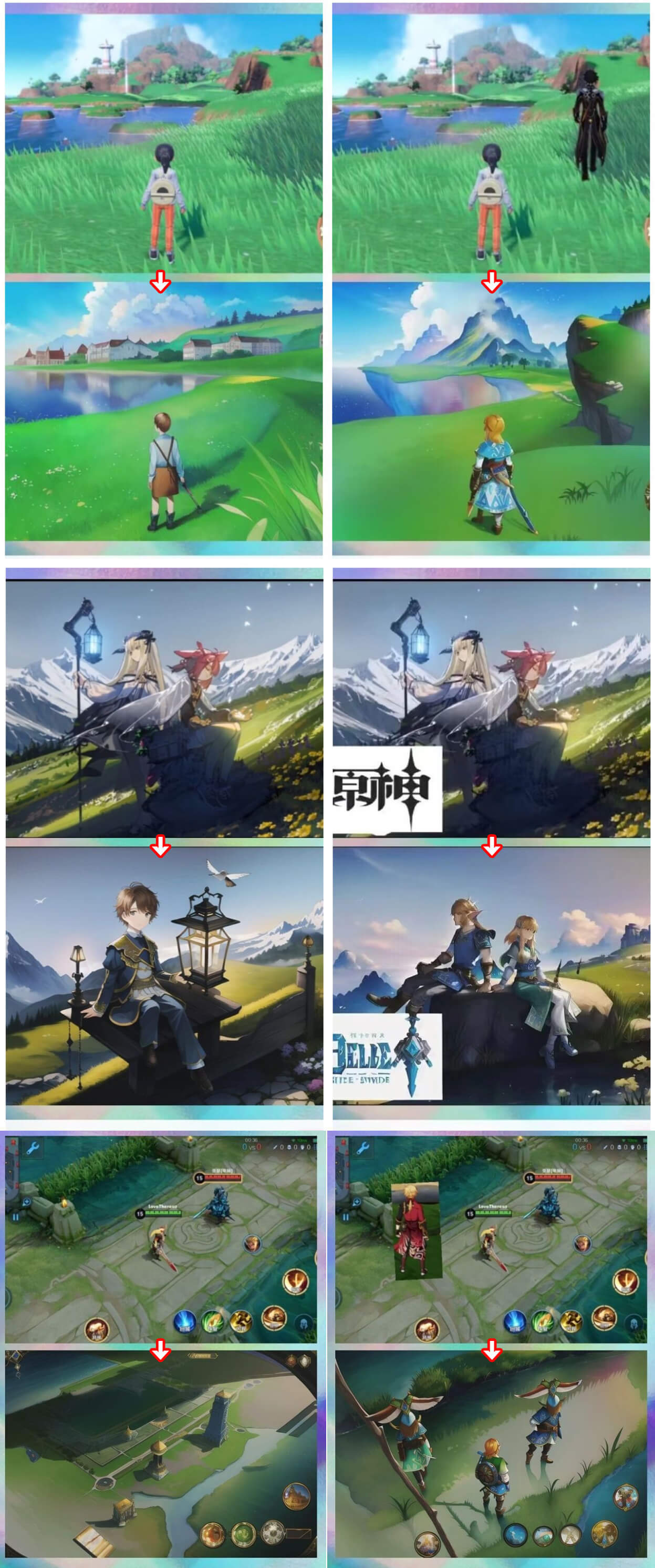 - «原神»游戏截图,AI生成林克;同一张截图,把logo换成别的游戏的,AI正常生成东西。
